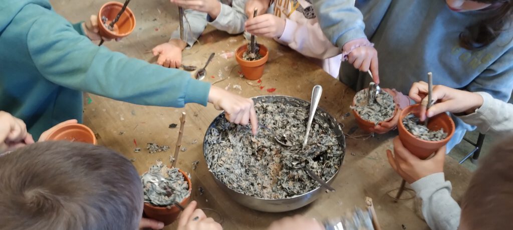 Papierglocken, Holzglocken mit Perlen, Goldfolie Windlichter, Karten, Vögel – Futterglocken, Tontöpfchenglocken, Transparentpapier-Fenster- Glocken, Filzglocken, Glocken zum Ausmalen, …