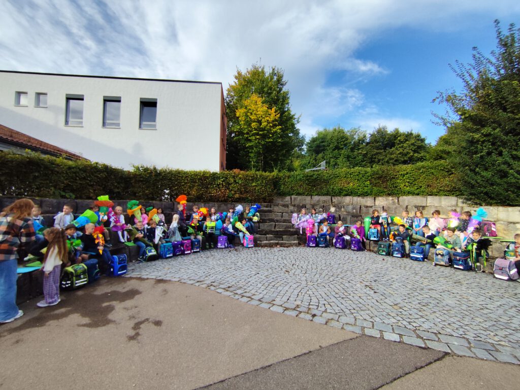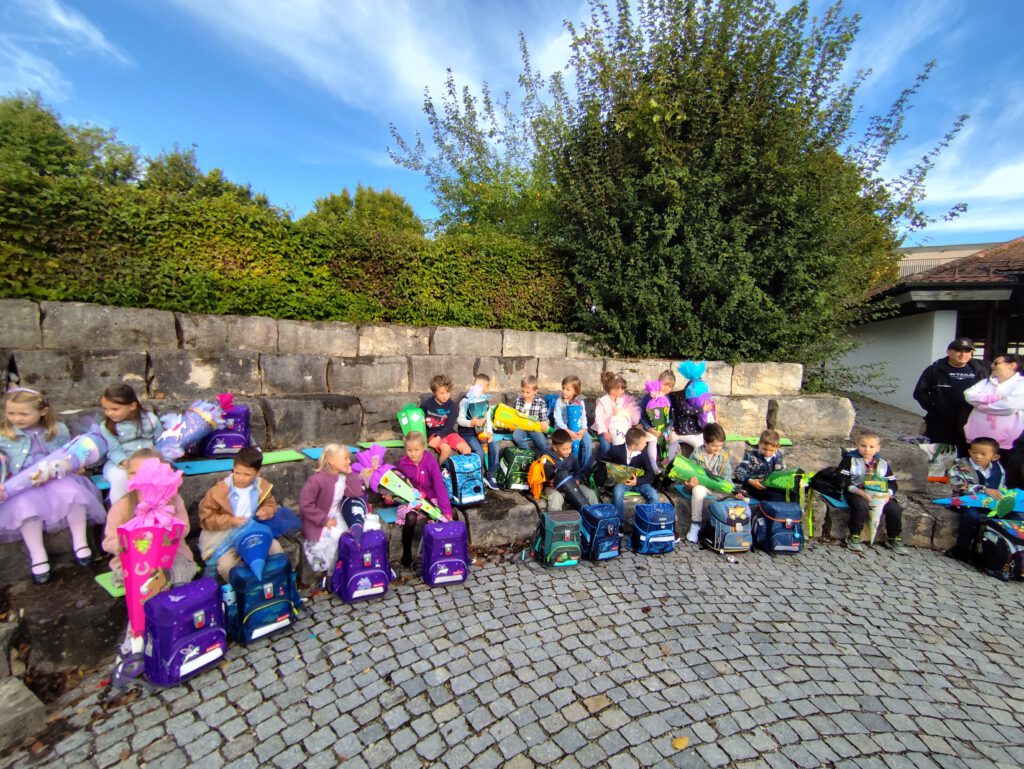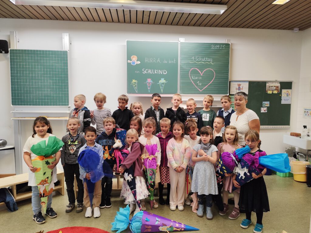 Am 16.09.2025 war es mal wieder soweit: die neuen Erstklässler wurden in Weichs eingeschult. Mit ihren vollen, bunten Schultüten kamen sie gemeinsam mit ihren Eltern erwartungsvoll in der Grundschule an. Rektorin Sibylle Prell hieß alle herzlich willkommen. Die 3. Klassen sangen ein schwungvolles Begrüßungslied und Zweiter Bürgermeister Hofmann begrüßte alle Anwesenden und sprach einige einstimmende Worte.