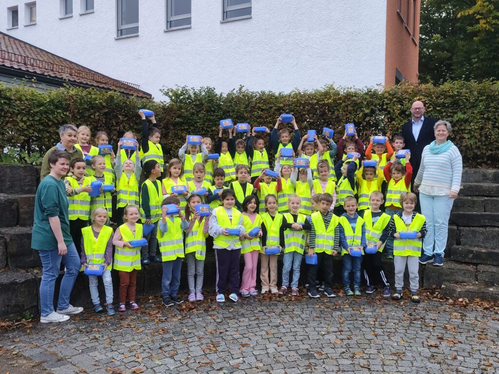 Die leuchtenden Westen machen die Kinder auf dem Schulweg gut sichtbar, während die wiederverwendbaren Frühstücksdosen mit Obst, Gemüse und Vollkornprodukten für einen gesunden Start in den Unterricht sorgen. So sind die Schulanfänger sicher unterwegs und gestärkt für den Tag. Herzlichen Dank dafür!